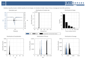 The visualization of the real stroke-rate (stroke-rate distribution right) is an easy task. Processes with a noteworthy potential for acceleration can be monitored precisely with ConSenses technology during the acceleration task. This reveals technical nonlinearities and tasks directly. We have many examples, where stroke rate could be raised safely and lasting. In the special case of machines with servo-technology, the usage of ConSenses systems opens further huge potential.
